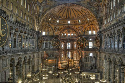 The Haghia Sophia (Ayasofya) is a museum, former place of worship, and renowned architectural masterpiece located in Istanbul, Turkey. It was built, destroyed, and rebuilt from 360 - 537 C.E. During this period, Constantinople was the capital of the Byzantine Empire (which is also referred to as the Eastern Roman Empire). After the fall of Rome, Istanbul became the center of the Christian world, and the Hagia Sophia became the official Empire Church where the rulers of the Eastern Roman Empire were crowned.